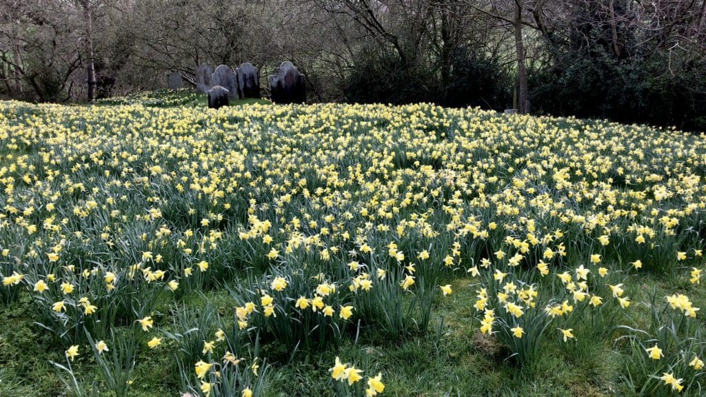 Don’t forget to call in at St Mary’s Church where there is the best display of the daffs in the cemetery.