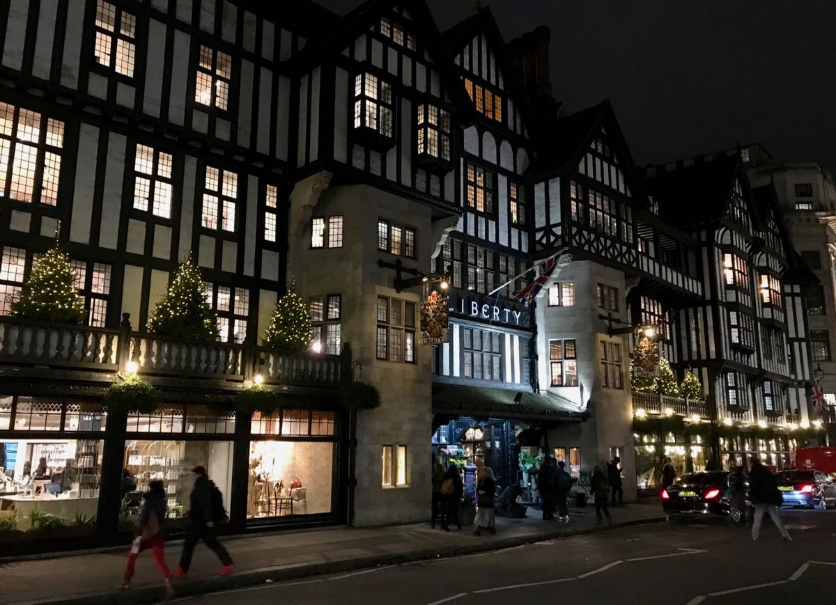We skirt Liberty’s along Little Marlborough Street and look through the windows from time to time. There are the usual huge plate glass ones complemented by tiny leaded ones all adding to the beauty of the building. We’re on Great Marlborough Street heading east-ish when it magically changes its name to the more appropriate, for this time of year, Noel Street then we turn left to find a link to Oxford Street and once again we’re bombarded with lights.