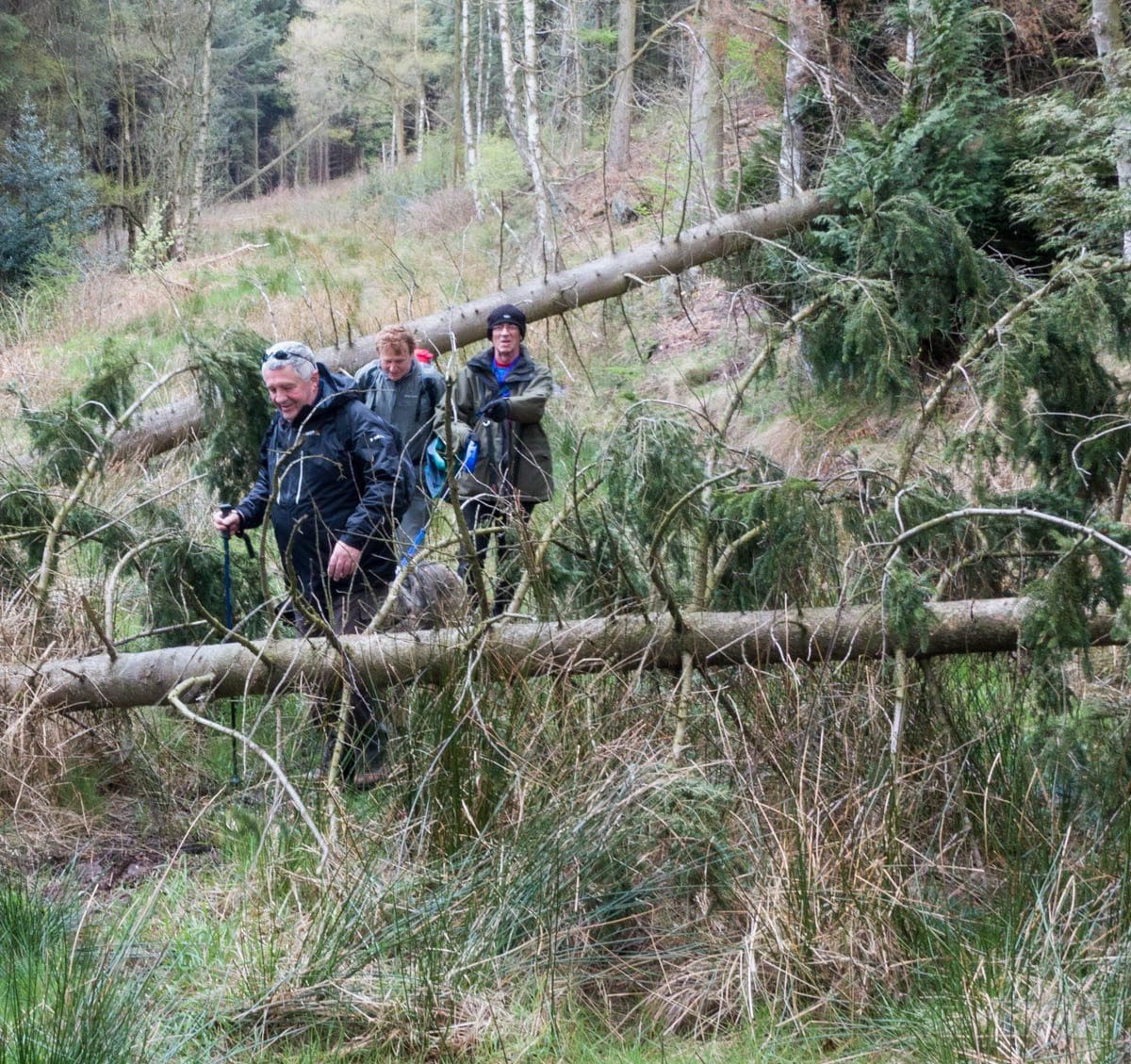 This track is much drier and we make good progress then follow a firebreak to the main track that leads between Square Corner (our start point) and Silton. Yes, we could have gone direct but would have missed the gorse and the adventure in the trees.