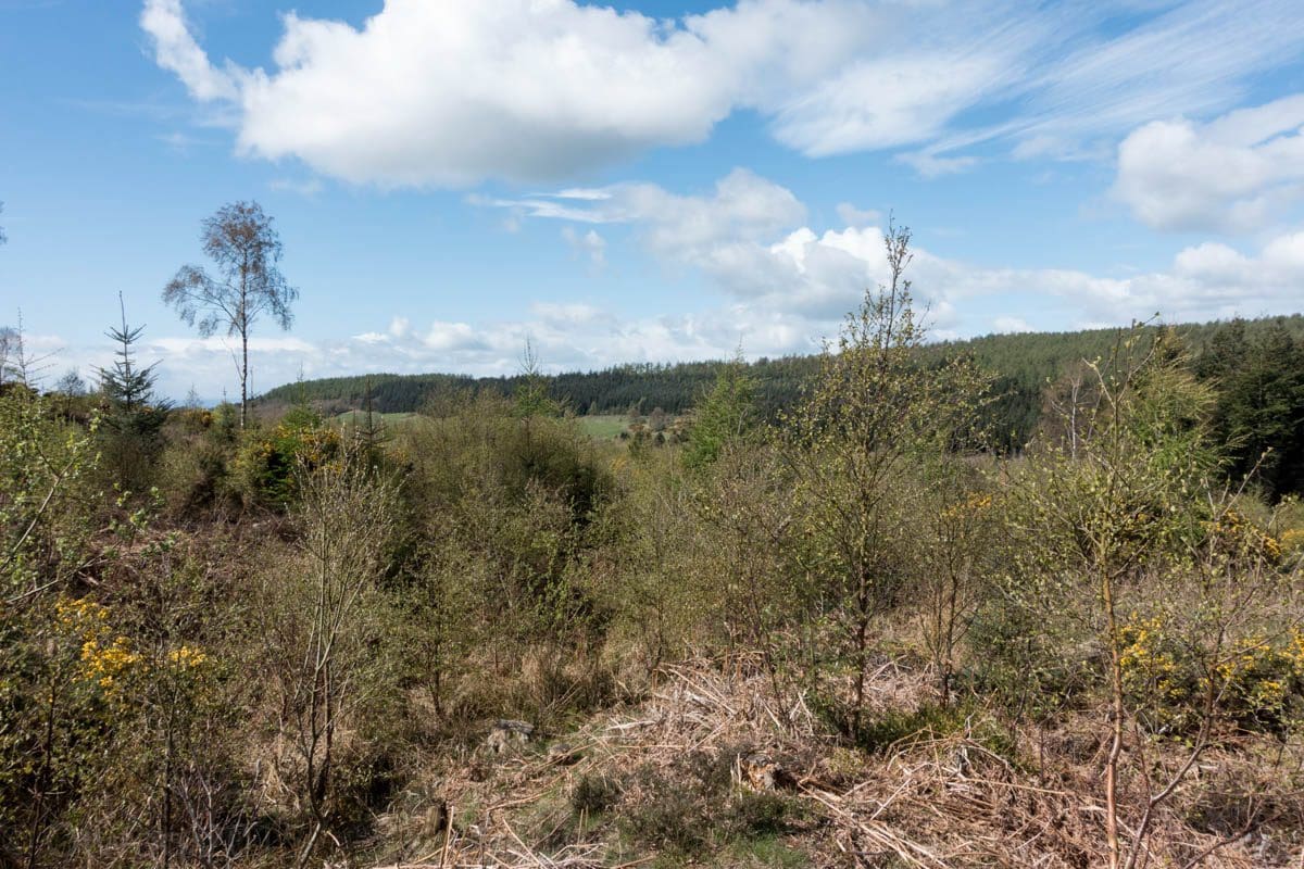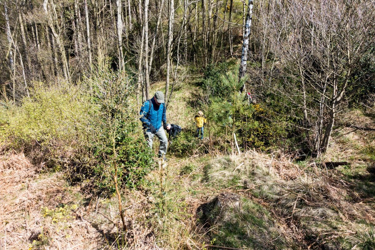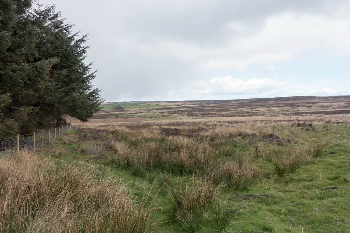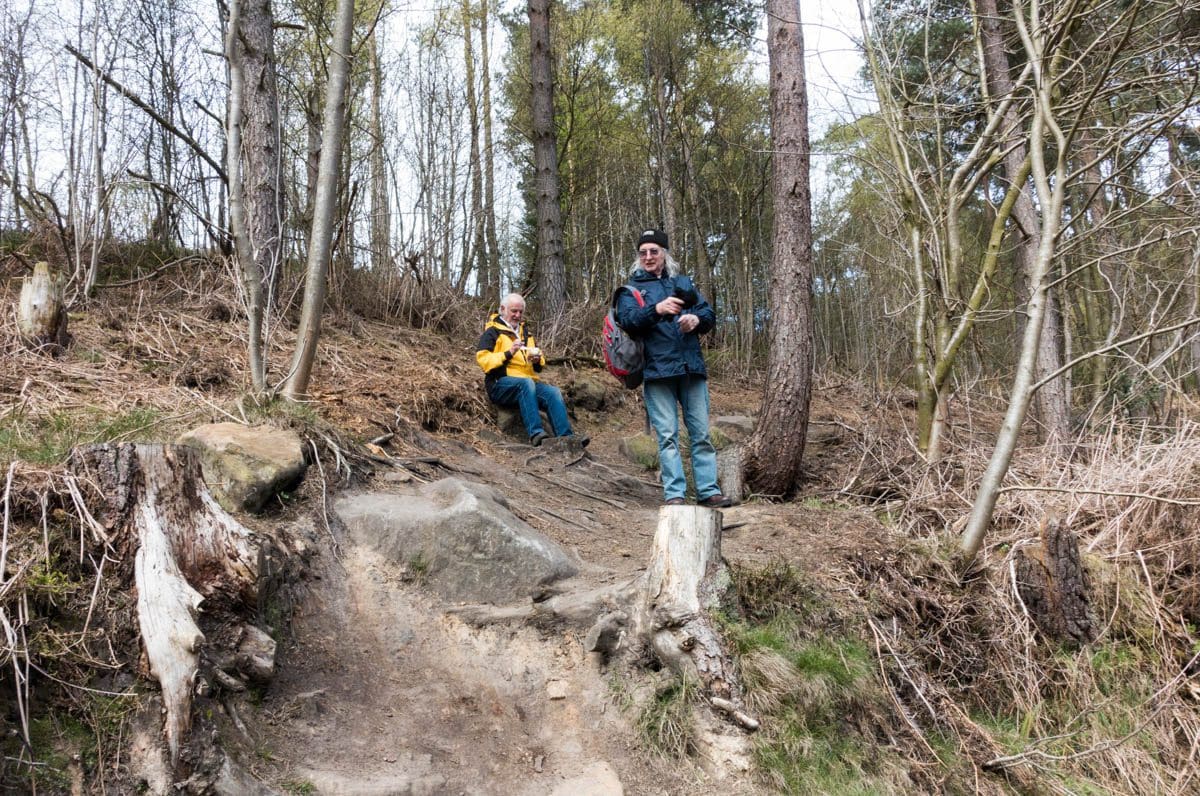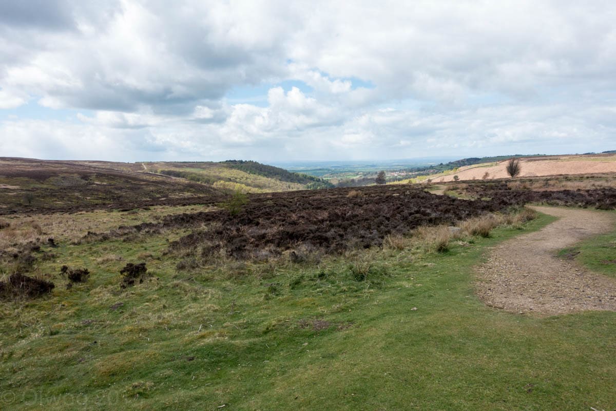 We set off for the high track to make our return. Initially, it’s a bit of a scramble and we get some grip from surface roots and boulders. The route is through more trees and gorse with views down to the Vale of Mowbray (I think) and we stop a couple of time to take it in.