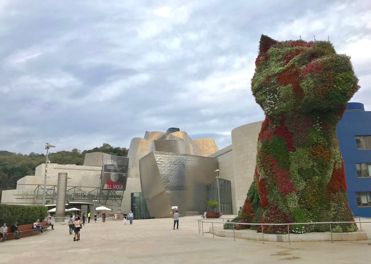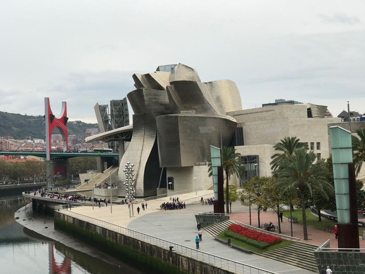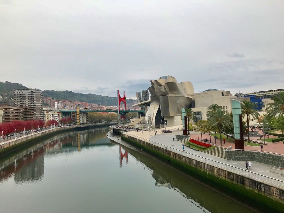 We pass the Guggenheim and head to the new footbridge and like all of the constructs in Bilbao it’s thoughtful, highly functional and very easy on the eye. We like it and use it for several photos including some of the Guggenheim itself which looks good from this angle.