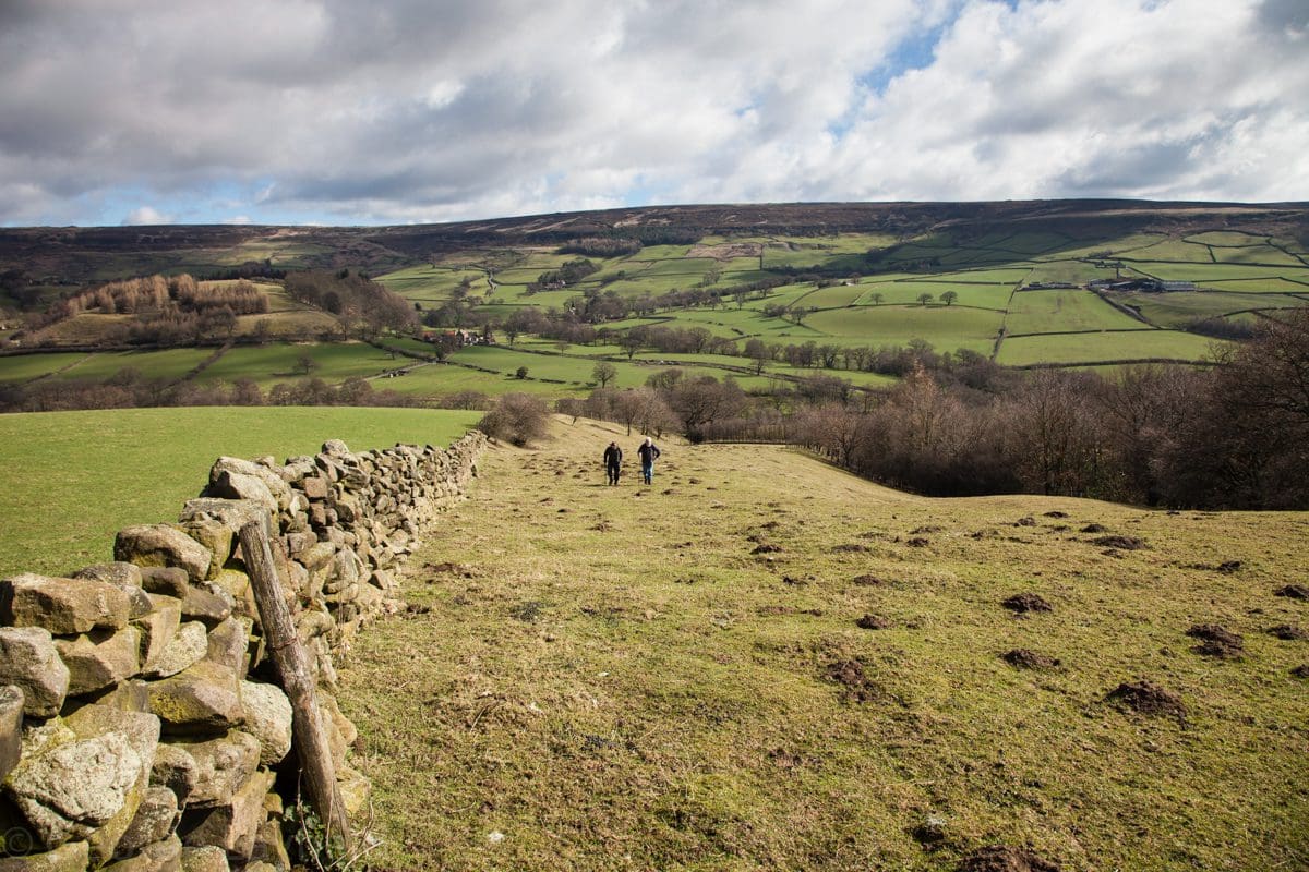 We turn right on the Eastern version of Daleside Road and begin walking south in the general direction of Low Mill. If you take this walk you really must be vigilant looking all around you. The scenery is enchanting from fields to moors to tracks and lanes with dry stone walls. This is picture book country and the sun lifts the spirit and also enhances the views.