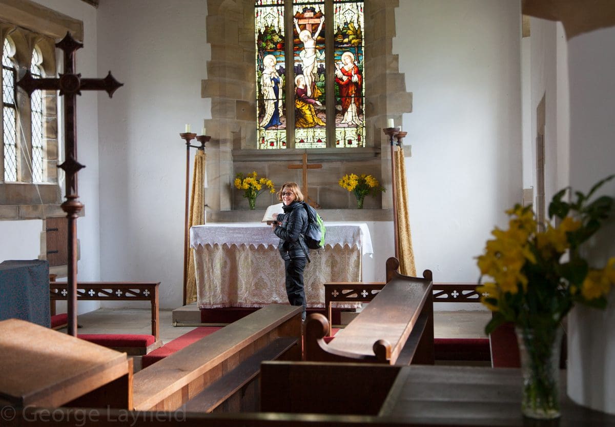 Turning left out of the church then left at the end of the building takes us to a gate and the footpath up to the road. There’s a group of walker going in the opposite direction who’re discussing saving a lamb that had been stuck in the river. Their damp attire was testament to the event and the excitement in their voices conveyed the drama. Apparently, there were issues with the mother who wasn’t at all sure of their positive intentions but the smile on their faces was indication enough of the eventual success.
