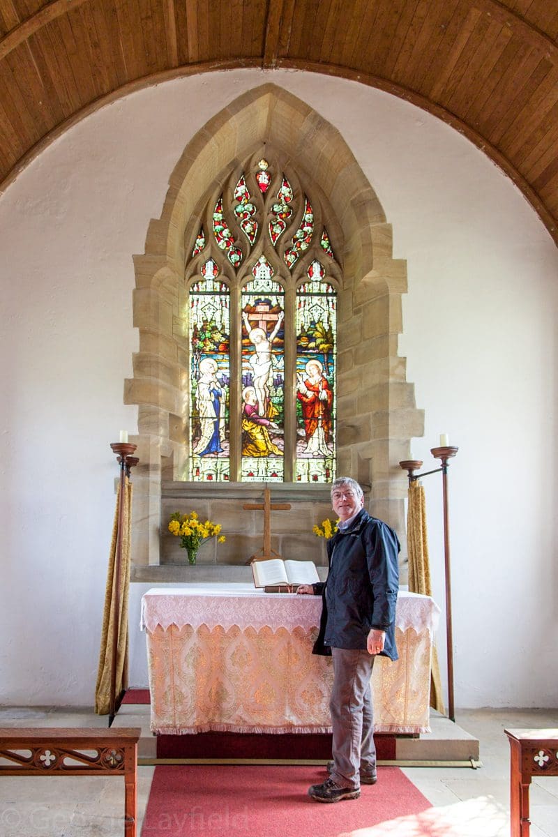 The daffodils that surround the church are much further on than the ones by the Dove and reflect the sunshine as we pick our way around the building.