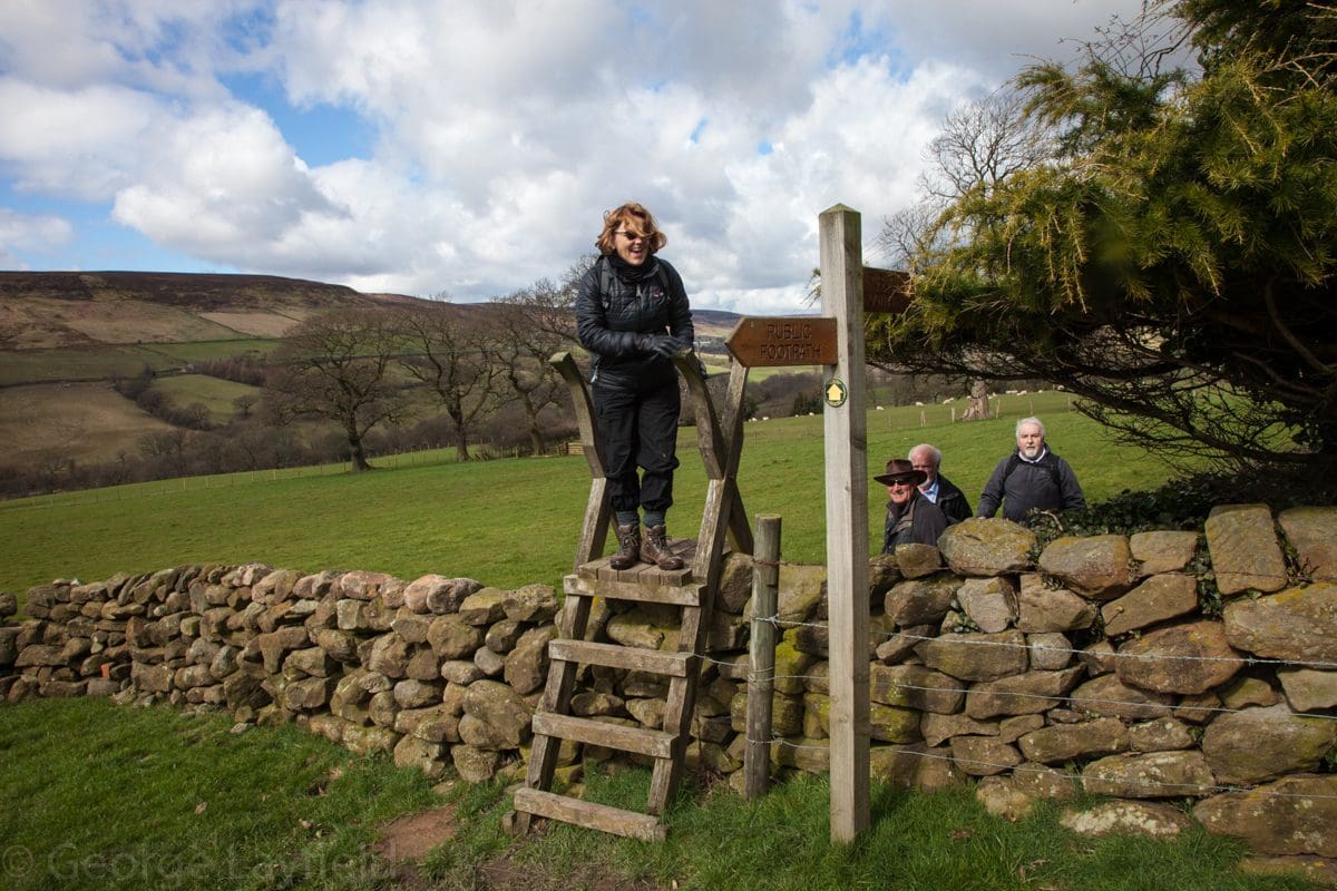 We reluctantly leave the Daffy Cafe and Daffy George turning right and rounding a bend in the lane, there’s a gate to the left which we pass through and cut diagonally across the field and cross the bridge over the Dove to gain access to the west bank. This is the only really testing piece of ‘up’ but we’re all quite fit now and it doesn’t prove an issue to anyone. It does; however, give us the opportunity to appreciate the fabulous vista behind us as we ascend.