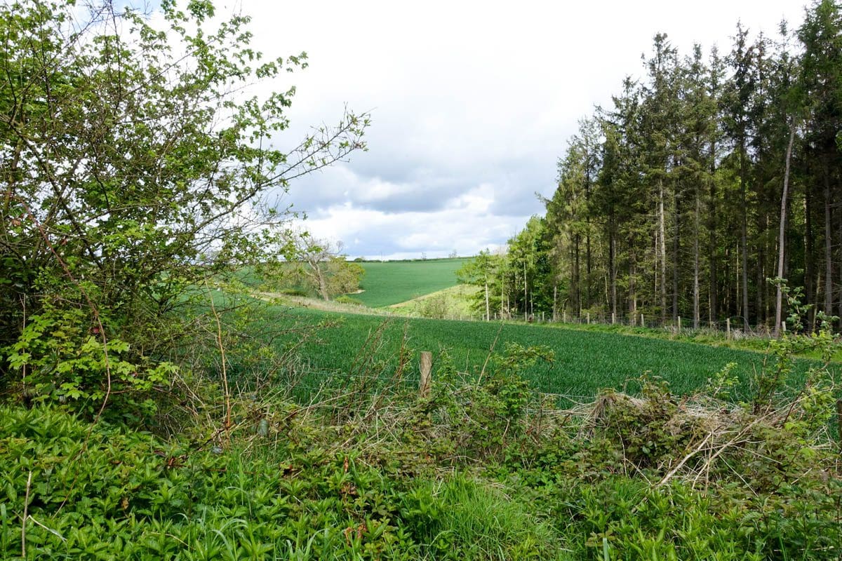We make a committee decision. The Forestry Commission track that we’re on takes us to the edge of the forest and we make our way along the periphery adjacent to a cornfield. After 20 minutes we realise that this plan will result in us arriving at a deep gorge with no trail and an added challenge of a river lurking at the bottom. We reverse our last decision! We review the D&S map, I check the app on my phone and then we make a rule to protect us. The rule is that we maintain a way of getting back to the farm, it has to be unambiguous and clear. This is a good rule.