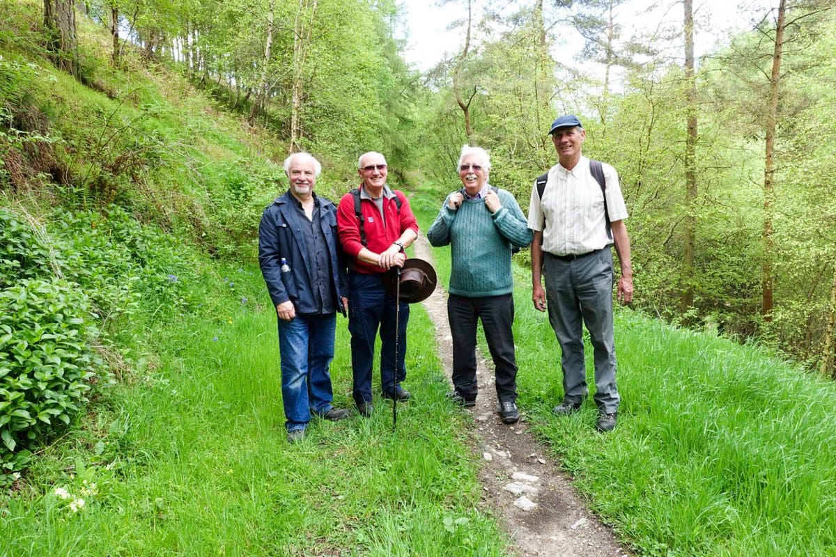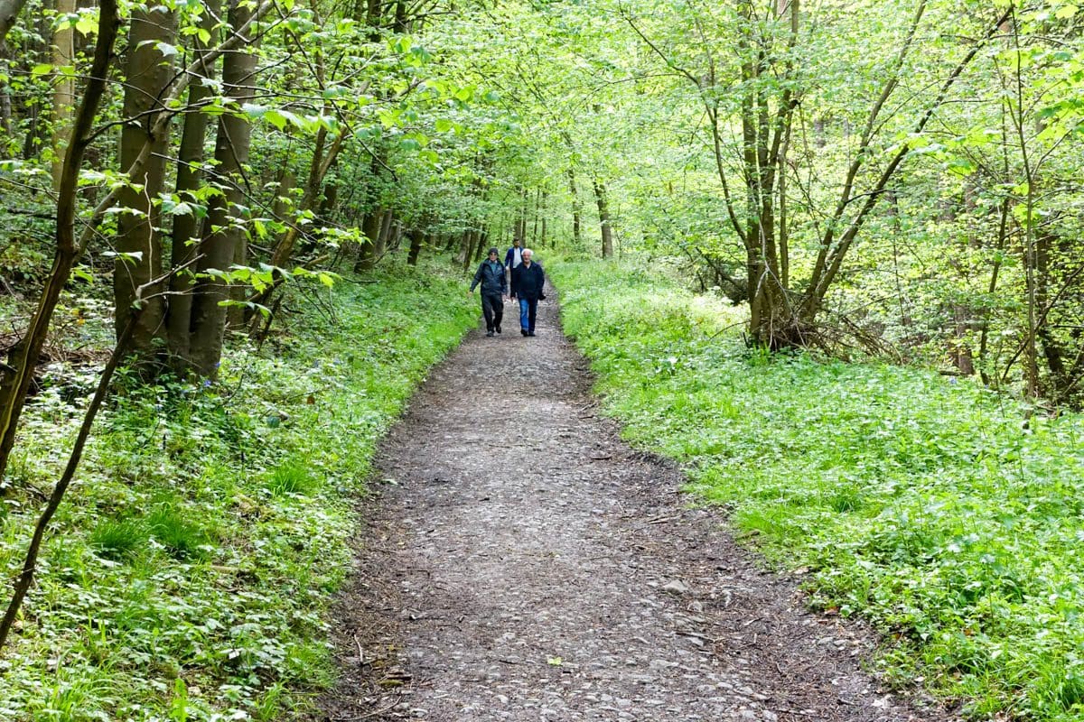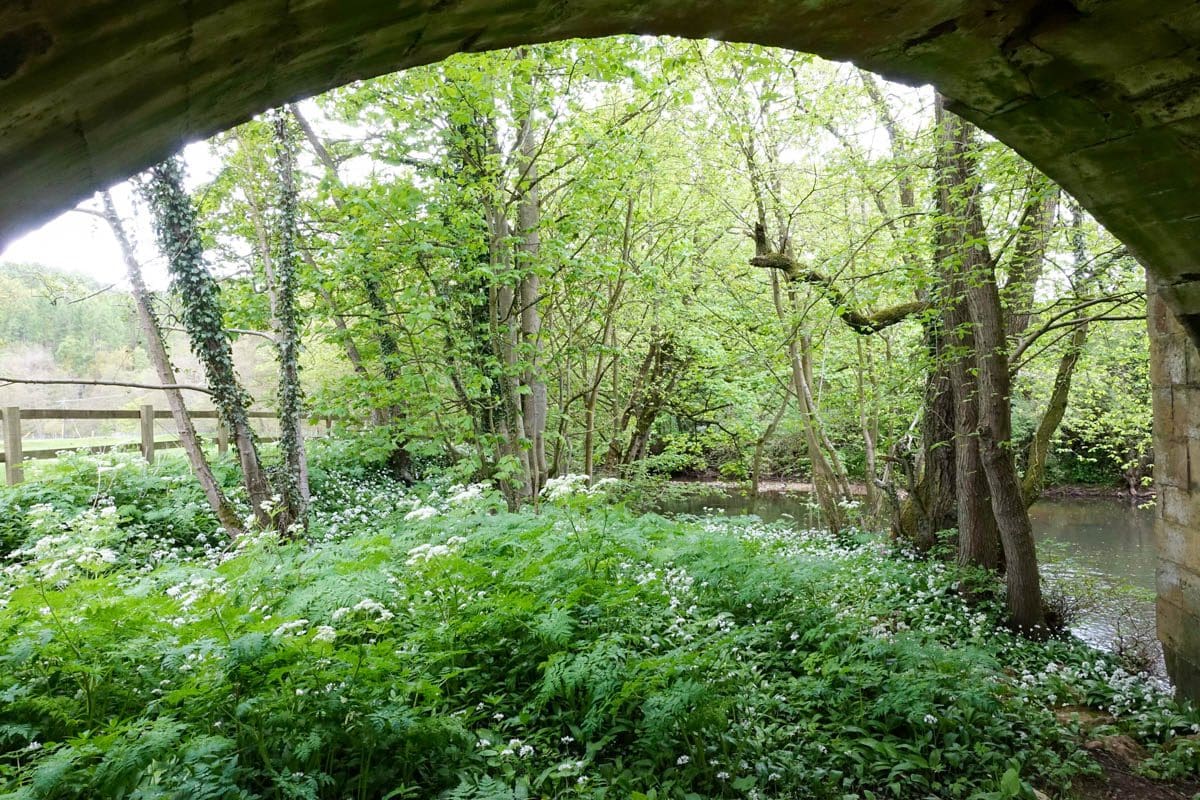 The second mile of the route is down into and along Ryedale the river Rye running to our left. The cutting that we negotiate is carpeted with wild garlic, bluebells (English), forget-me-nots and some tiny white flowers that I initially thought were garlic. I realise that I haven’t been talking to anyone over the last few minutes yet there’s a non-stop stimulus of at least three of the senses, the smell of the garlic, the wonderful singing from the birds and the myriad of flowers confirming the arrival of spring. There’s never a dull moment on these walks.