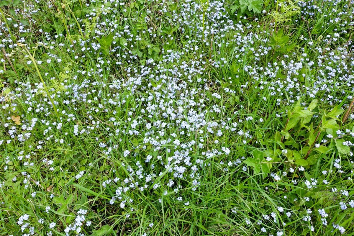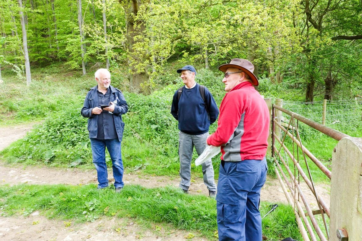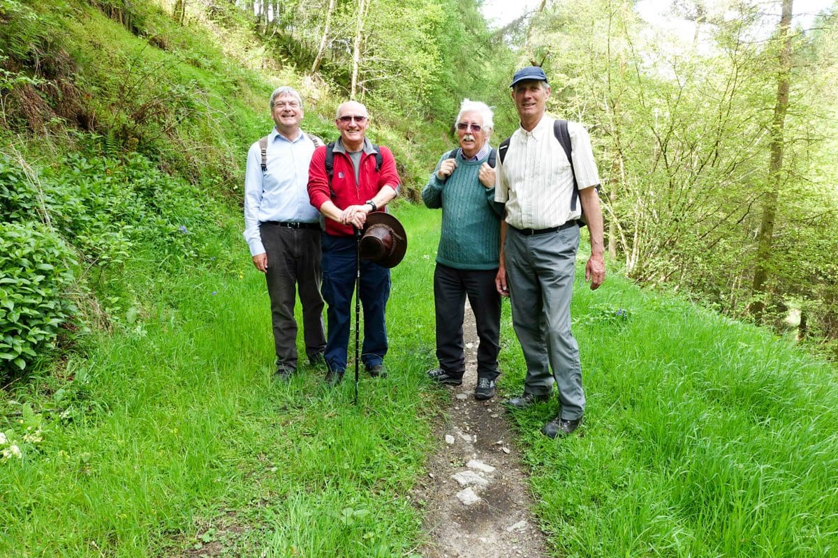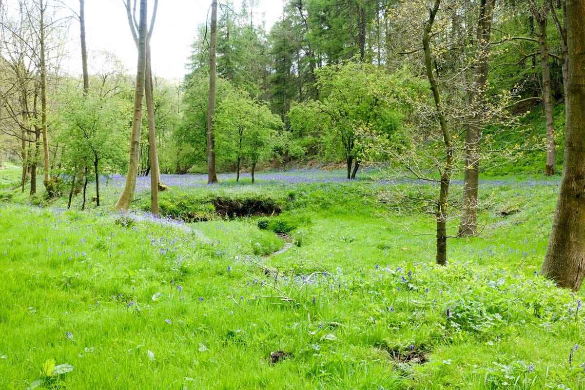 The second mile of the route is down into and along Ryedale the river Rye running to our left. The cutting that we negotiate is carpeted with wild garlic, bluebells (English), forget-me-nots and some tiny white flowers that I initially thought were garlic. I realise that I haven’t been talking to anyone over the last few minutes yet there’s a non-stop stimulus of at least three of the senses, the smell of the garlic, the wonderful singing from the birds and the myriad of flowers confirming the arrival of spring. There’s never a dull moment on these walks.
