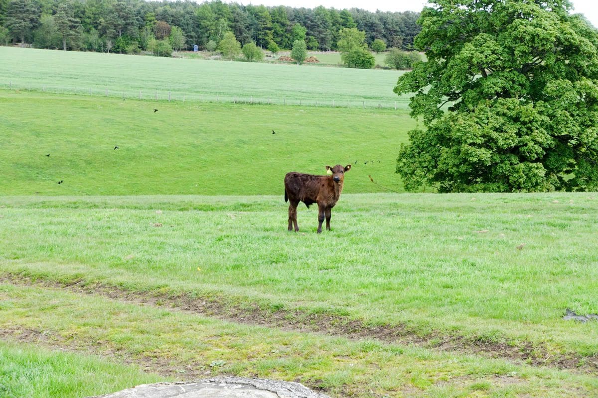 The D&S map is looking a bit dog eared by now but still easy to read and it informs us that our next waypoint is a walk through the stackyard of Oscar Park Farm. I always feel uncomfortable walking through the stackyard of farms, it feels like violating the privacy of the occupants but the visit is fleeting and we’re into a field of cows and their calves which look only a few days old.