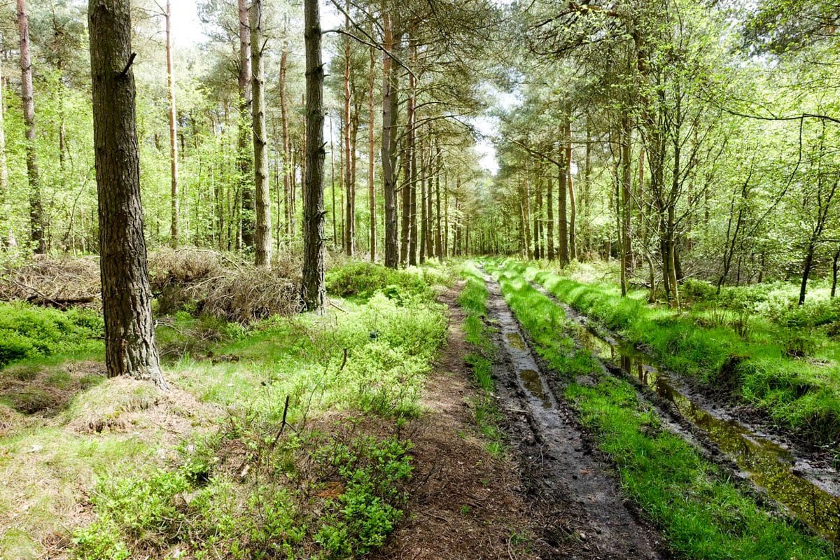 After 20 minutes we arrive at the point where we join the trail on the D&S map but half a mile north of where we should have joined it. We set off along this track and after another half a mile of ruts complete with mud and pools that are black beyond description and surrounded by both upright and fallen trees, it peters out. Shit! I’m struggling now. I can propose that we put our faith in the app and plough on through the undergrowth but that would break our rule so I propose that we go back and this, to my relief, is accepted.