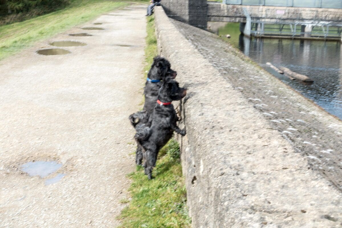 Millie is interested purely because Frank is interested and she joins him to look over the wall. After only a second she’s lost interest and has transferred her attention to some people who are passing and show an inclination to stroke her.