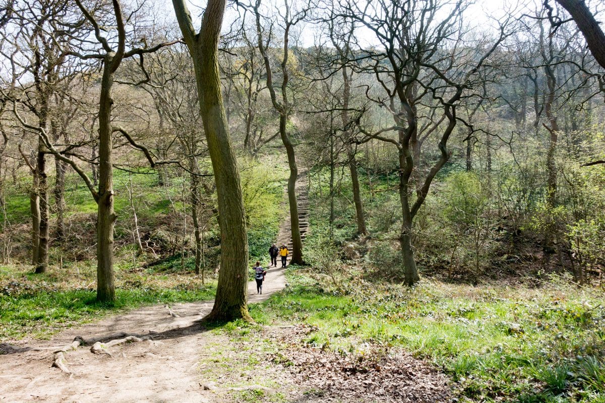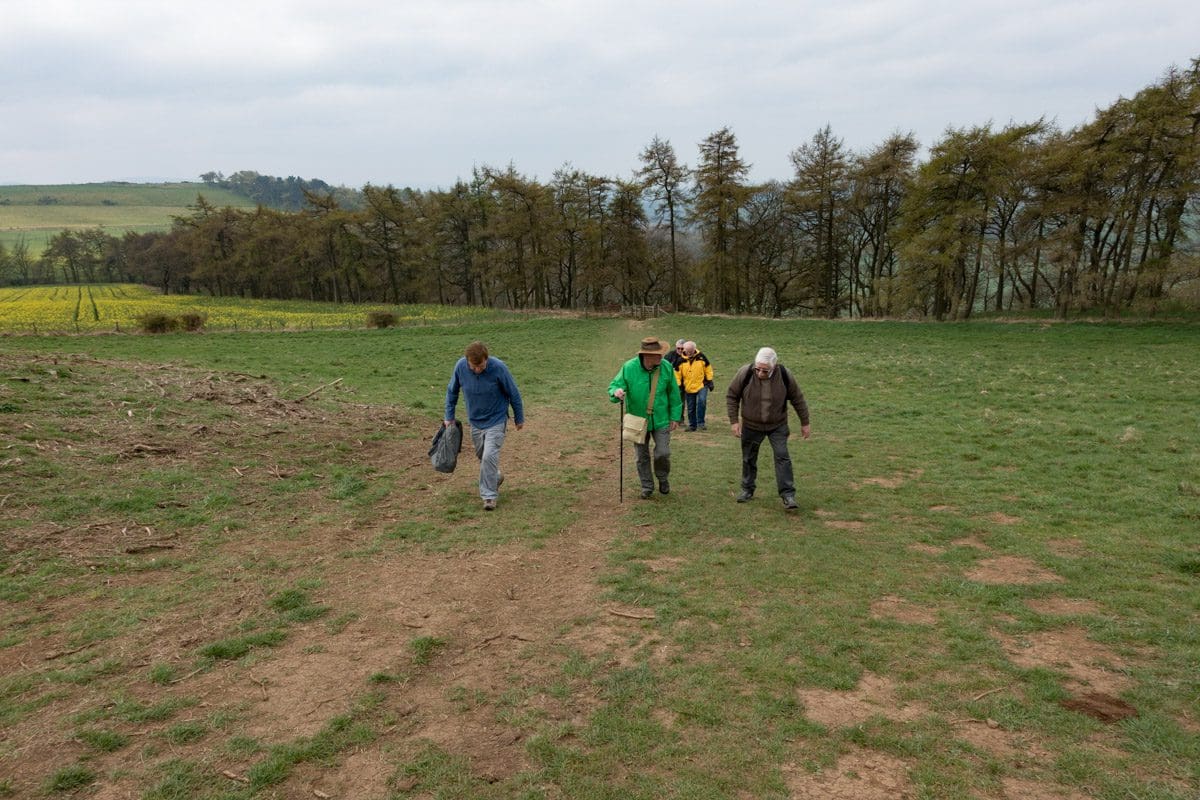 We continue along an ascending track that leads us through the wood across surface roots that anchor huge trees and double their value by holding the clay in place to maintain our path. The wonderful sunshine has triggered the trees into bud and everything is looking fresh and new.