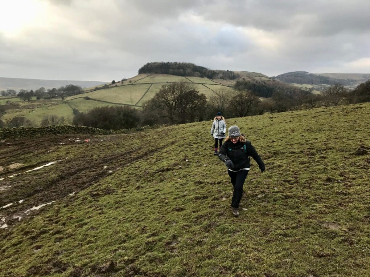 We park the car and make our way to the public footpath and walk north towards Northdale. The weather over the last few days has been seriously wet and cold so the track is muddy and there are mini-streams of water running off the fields. There are flocks of sheep looking at us as if they think we’re nuts as we yomp through the field of clingy and energy-sapping mud that sucks at our boots and result in sounds like a honeymooning couple on their first night. We need to pick and chose our route as some parts of the field are clearly boggy and there is no way to gauge the depth; the sheep, in the meantime are scratching their heads at the stupidity of these humans tackling this terrain ‘for fun’.