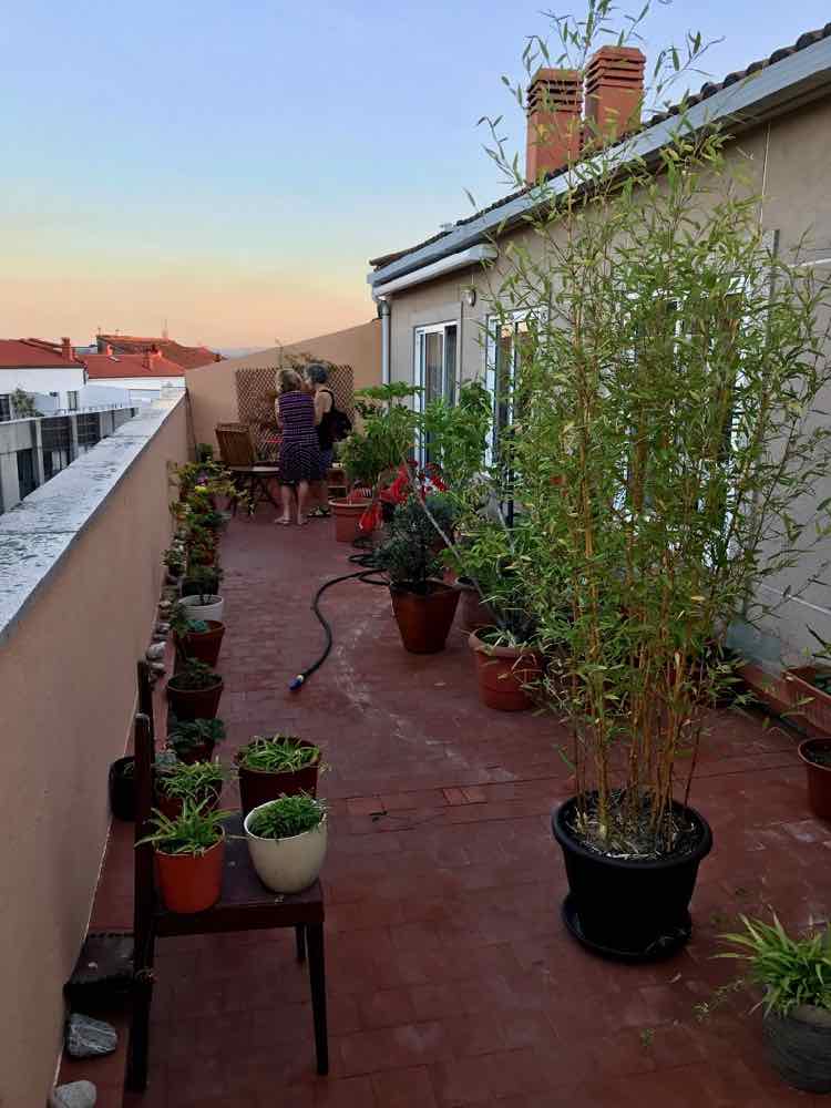 Now here’s a Spanish trait. Manuela had invited all of the people she’d met on her latest pilgrimage to the party starting at 7:30 then, quarter of an hour before the gathering will commence she goes out for a few glasses of wine with her friend! You see, ‘tiempo de ingles’ is somewhat different to ‘tiempo de espana’! Fortunately, Lilly is familiar with the stash of wineThe Pilgrim had sent me instructions to get some English cheeses as our contribution to the party so Jose, a high ranking attorney from Curiciba, is opening them on to plates that he’d acquired from secret cupboards in the kitchen. Coincidences are rife, Jose’s home is in city where I did some presentations at the University of Parana many years ago, small world! I remember a train journey from Curiciba through the jungle and down to the coast. Quite a bit of it was on ledges blasted and hewn by hand out of the cliffs and ridges thousands of feet above the jungle, but that’s another tale. Jose, like the other peregrines, is a wonderful, friendly man and he too, is on a mission but tonight, he has more important responsibilities, he’s in charge of wine and cheese!Manuela’s veranda is long and wide, scarred with various plants, a table and a few chairs. We settle round the table with John and Lyn, two Canadians, oh, and a bottle of wine.