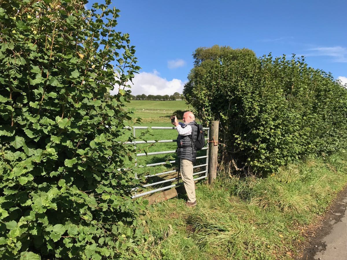 The trees are beginning to take on their autumn colours and the sunshine is showing them to their most beautiful advantage as we make our way up Shepherd Hill. If you decide to walk this route please take every opportunity to look behind you and to the left where Whorl Hill will delight you with its symmetry and colour.