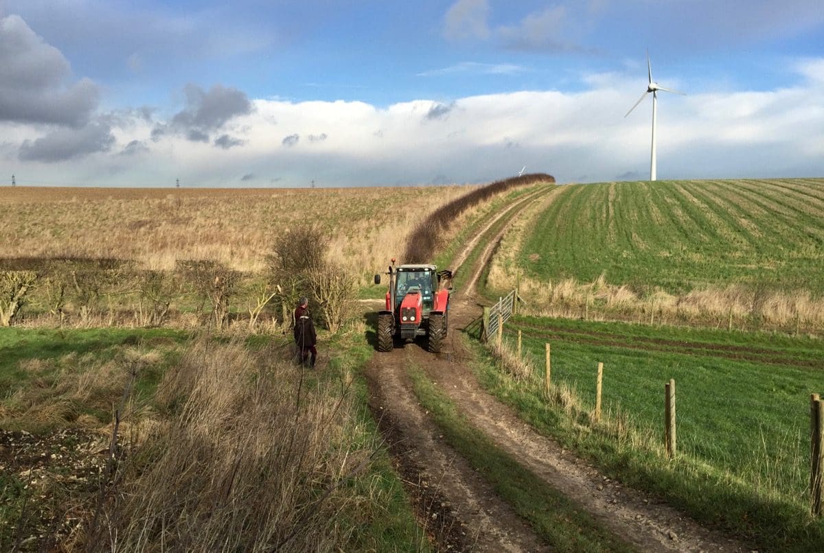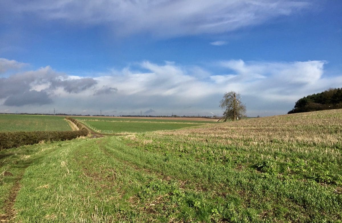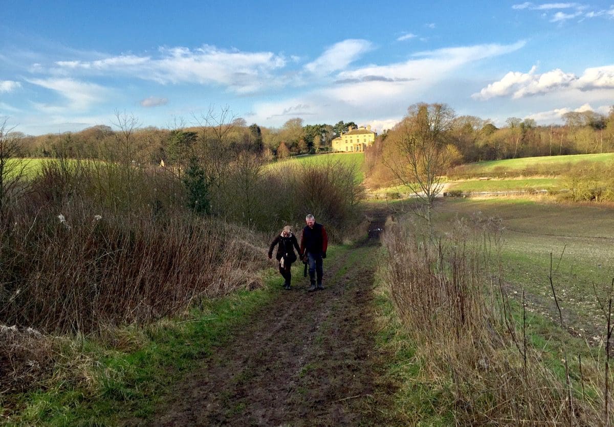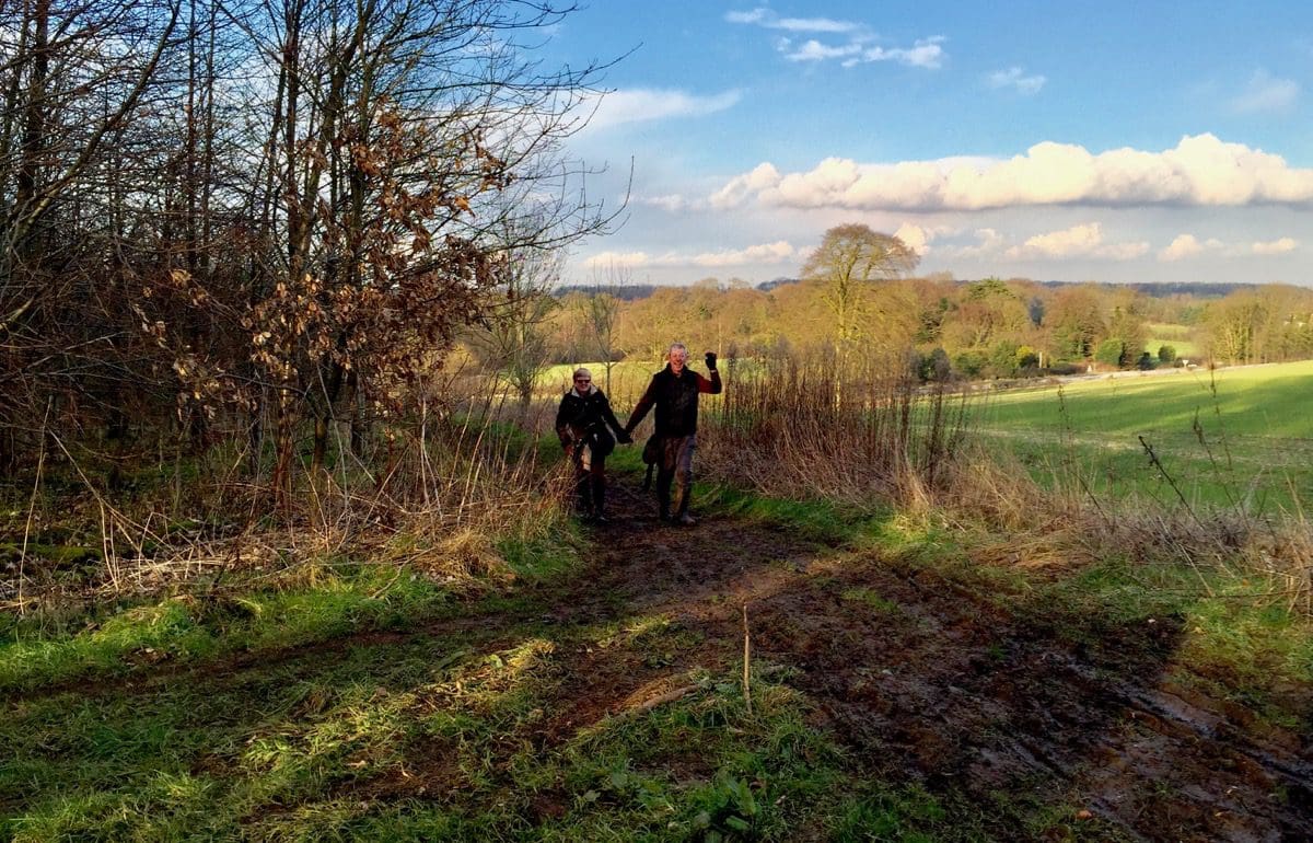 Initially, we walk down a gently sloping road with great views over the Wolds. A quick left and a right and we’re devoid of traffic but do have to suffer two crossbreed dogs who make the mistake of jumping up. Jayne rips the head off one and the other sees sense as we pass the owner who thinks that jumping up with muddy paws is cute!