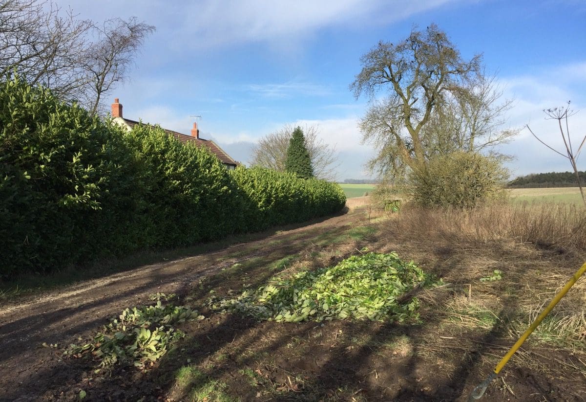 The sun is reflected off the small lake to our left and there are a couple of marsh birds lurking in the reads but I don’t recognise them and I’m sure they don’t recognise me, we’ve never been introduced! There’s a laurel hedge and Derek is showing a lot of interest in it. Apparently, there should be a house behind it and if so, then it designates where we should turn right. After a little bit of scurrying about it’s decided that we should take the right-hand route and off we go.