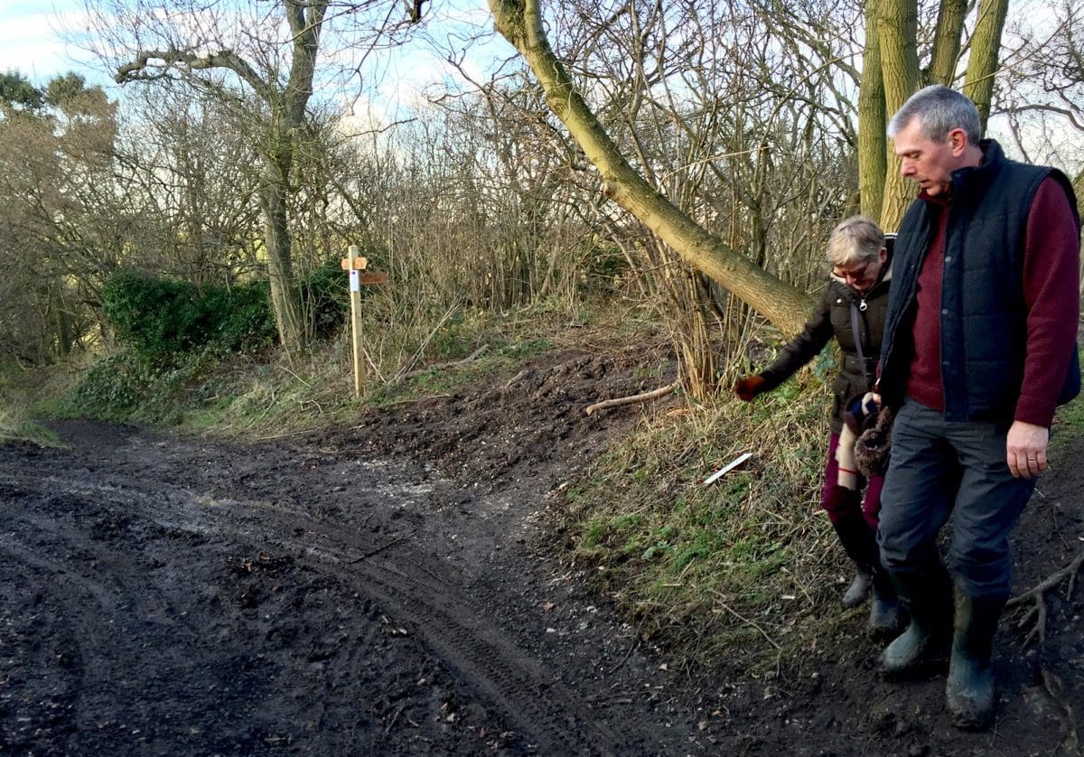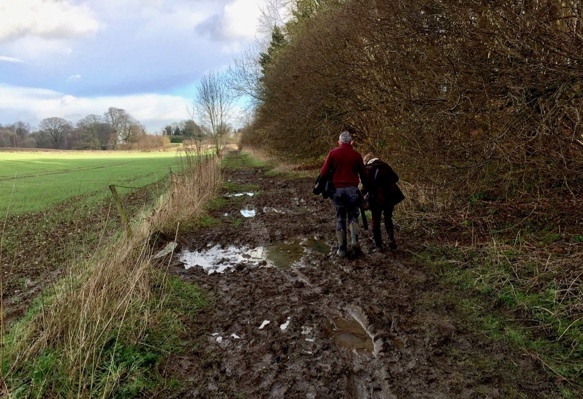 At Wouldby Scrogs (I’m not making these names up, although there may be a hint of embellishment elsewhere) there is a minor ‘discussion’ as to whether to turn right up through the edge of Nut Wood or take the lower route that would require aqualung and flippers. We take the lower route…