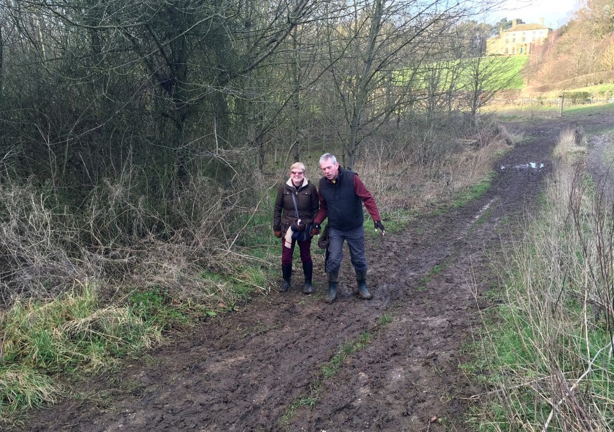 We turn right at Turtle Hill and walk between Braffords Clump and Fox Covert, then pass along a track that is a cross between a ditch and, errr, a ditch. The mud is approaching the tops of Jaynes thigh length boots and she has to stuff padding into the whip pocket to avoid being dragged under.