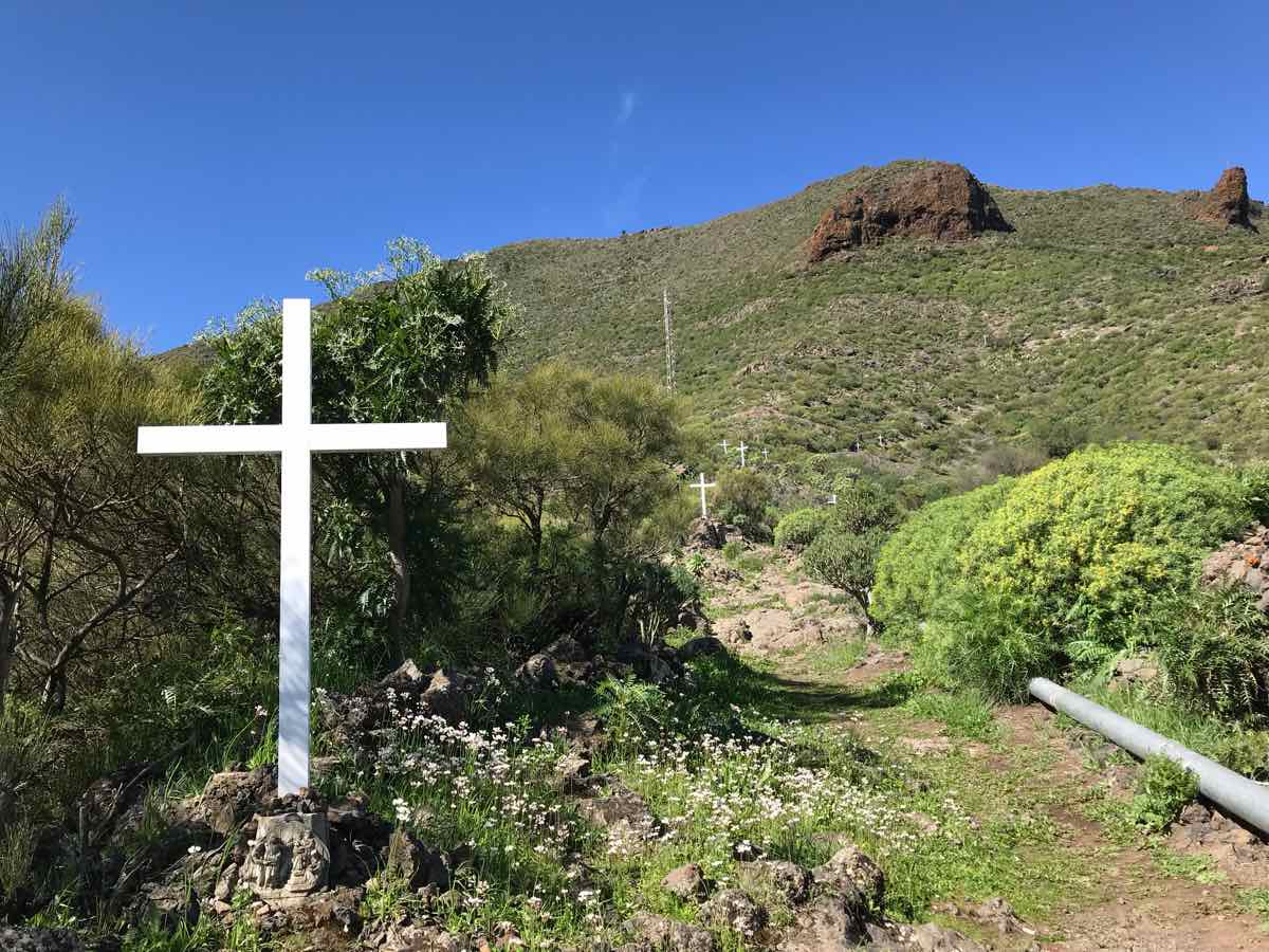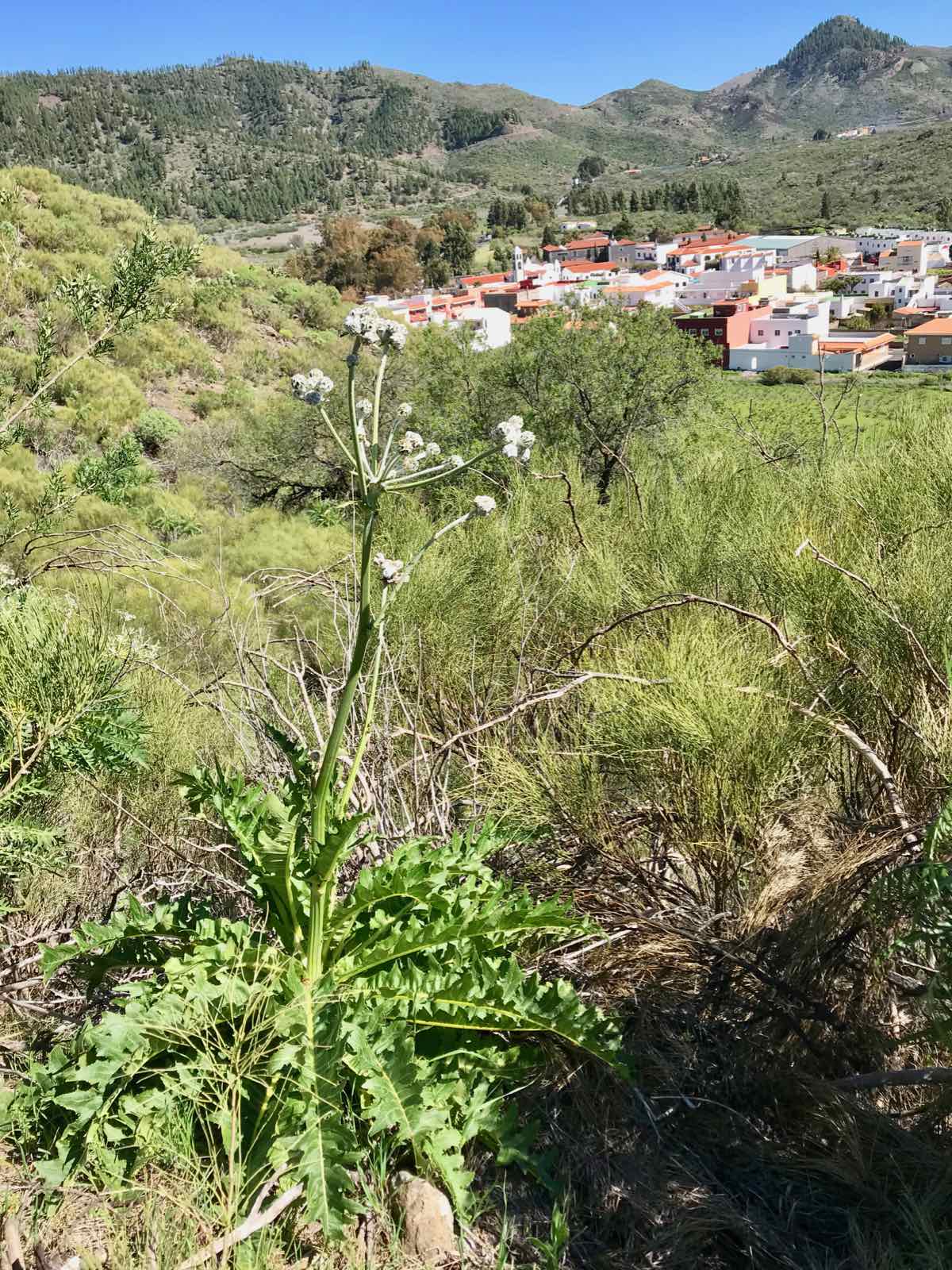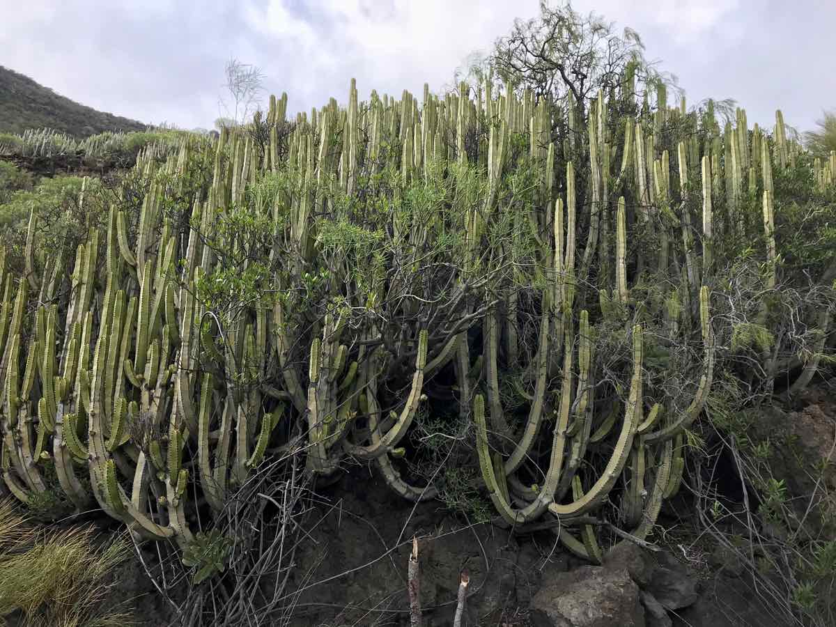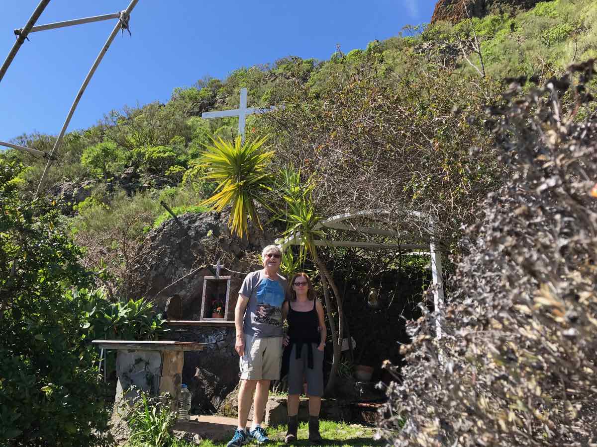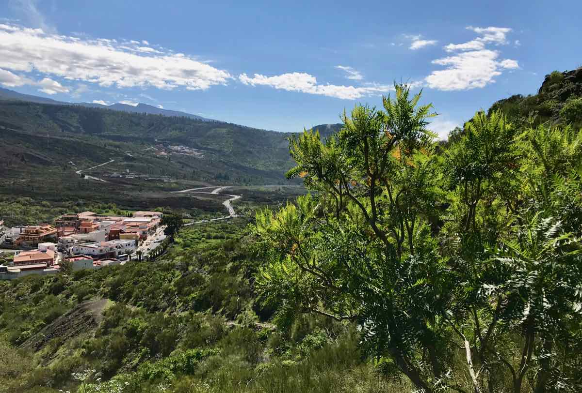 Santiago del Teide is a delightful little village at the base of Teide but at a height of about 2000 feet (900m). It’s got a lovely church and a few shops and more than its fair share of cafes. We chose one that’s on the side of the road with a few tables outside and one or two locals sitting at the tables inside. We order some coffee and a sticky bun and chose to sit in the morning sunshine to discuss what to do. I know that there’s a delightful but extremely short walk over a little bridge that goes over an arid river bed in the dry season and a raging torrent when there’s been some rain and, in fairness, we are in the middle of the Atlantic and only a couple of hundred miles from Africa so there can be some ‘interesting’ weather as witnessed by the boys only a couple of weeks ago.