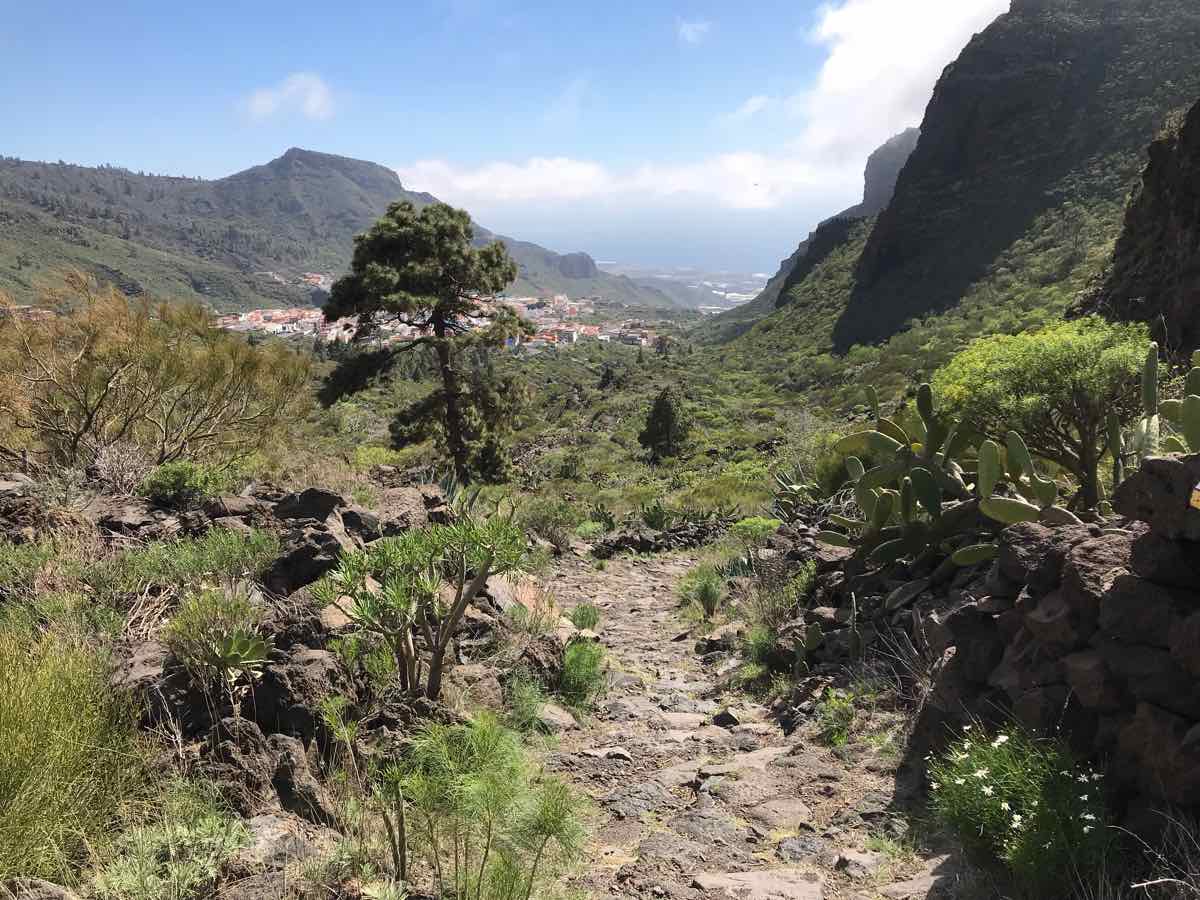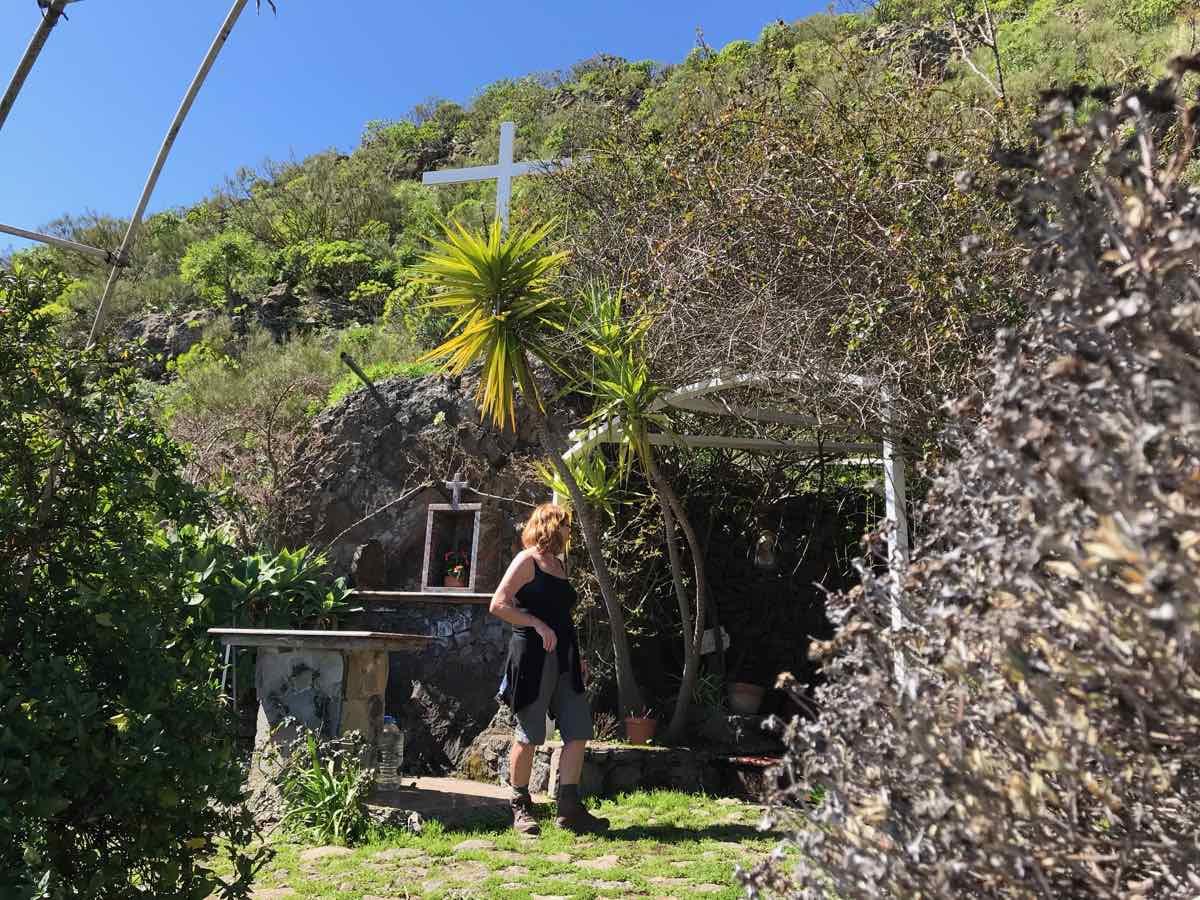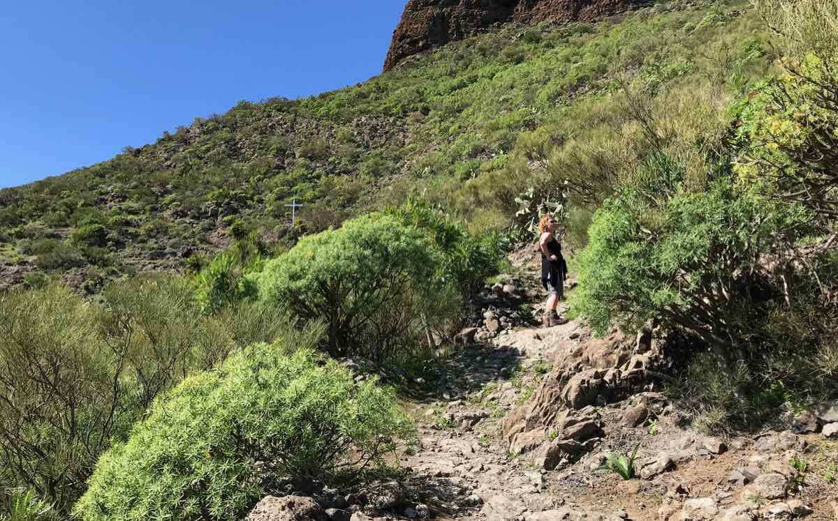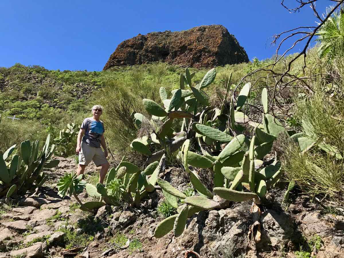We’re down two or three hundred feet now and walking adjacent to Tamaimo which is a bail out option if we spend the whole of this element of the walk in mist and cloud. The bus stops here and could take us back to Santiago; however, the weather has improved and although the scenery isn’t in the same league as Masca it’s still interesting and occasionally beautiful.