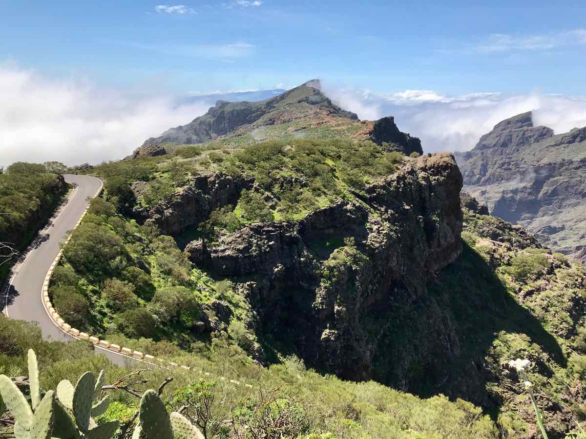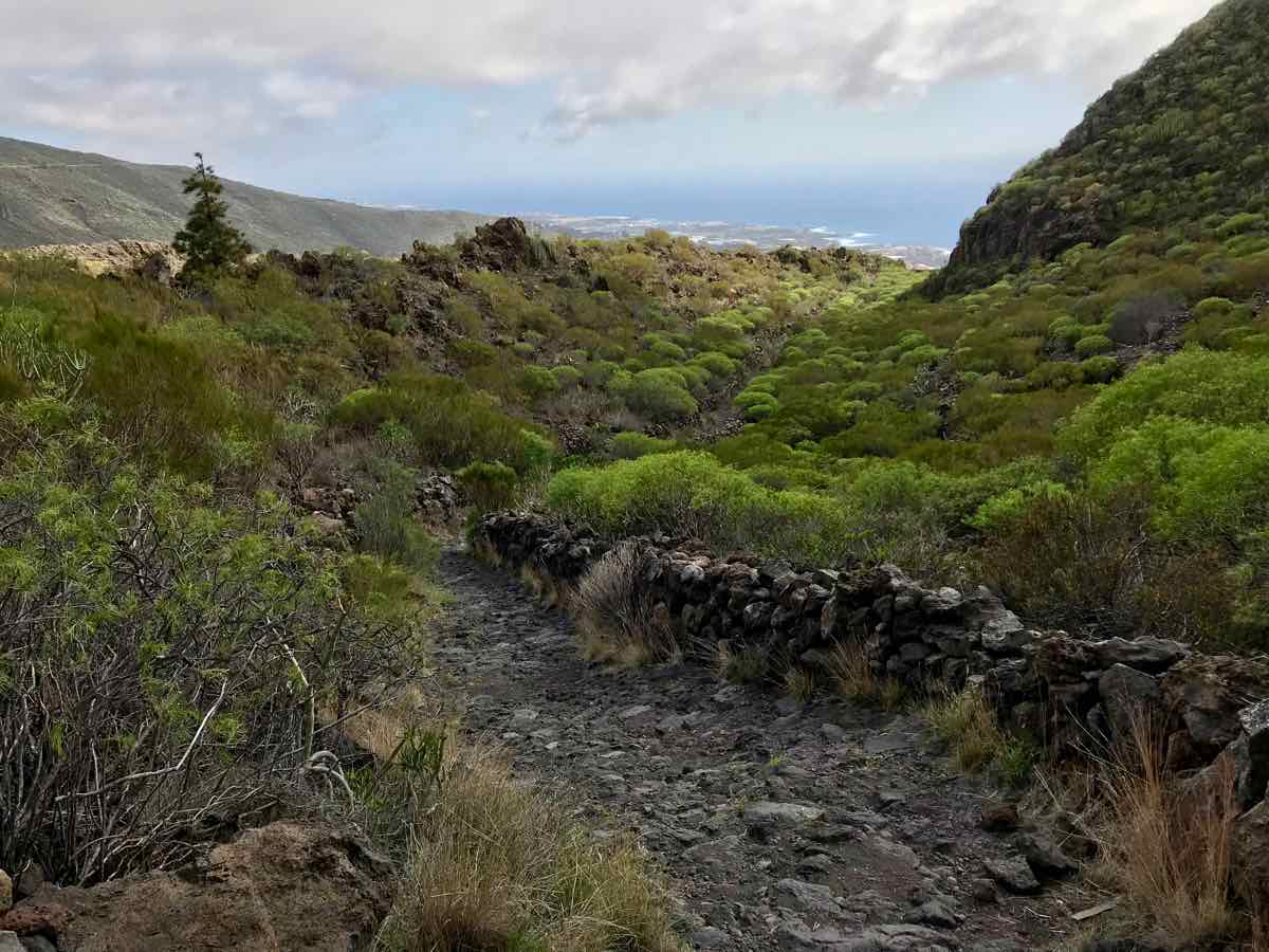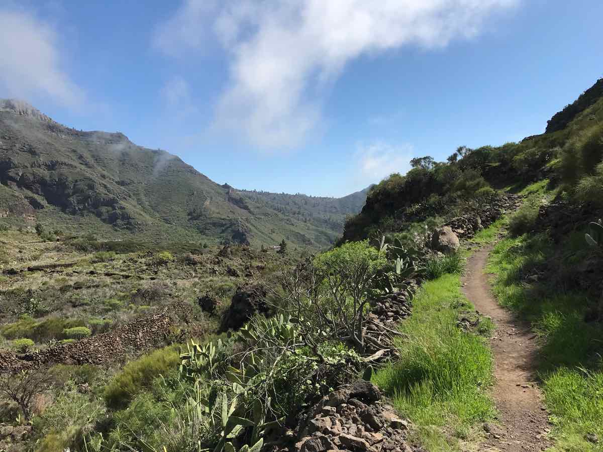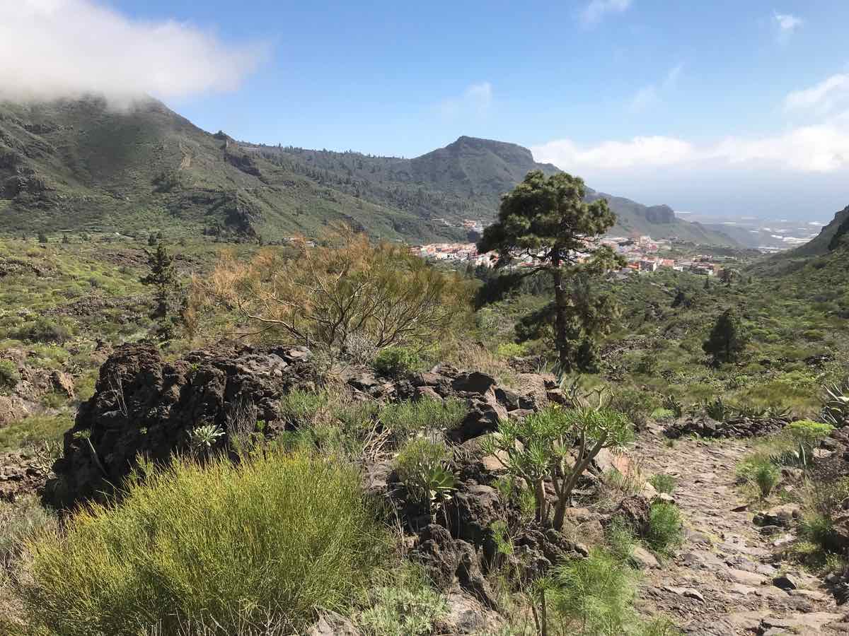 We’re down two or three hundred feet now and walking adjacent to Tamaimo which is a bail out option if we spend the whole of this element of the walk in mist and cloud. The bus stops here and could take us back to Santiago; however, the weather has improved and although the scenery isn’t in the same league as Masca it’s still interesting and occasionally beautiful.