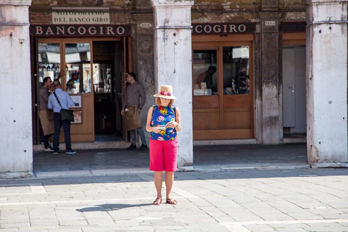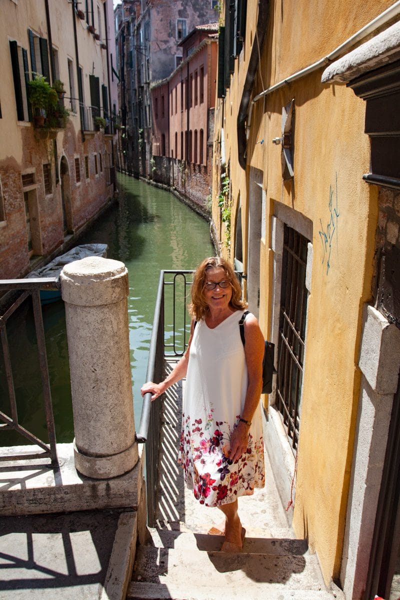 We disembark at Rialto and, whilst there’s no soft focus shot or slow motion approach we’re still quite glad that Sandra is really real and not a digital assistant living in a virtual world. We do the continental kissing bit, elaborate and on both cheeks and then she welcomes us to Venice.