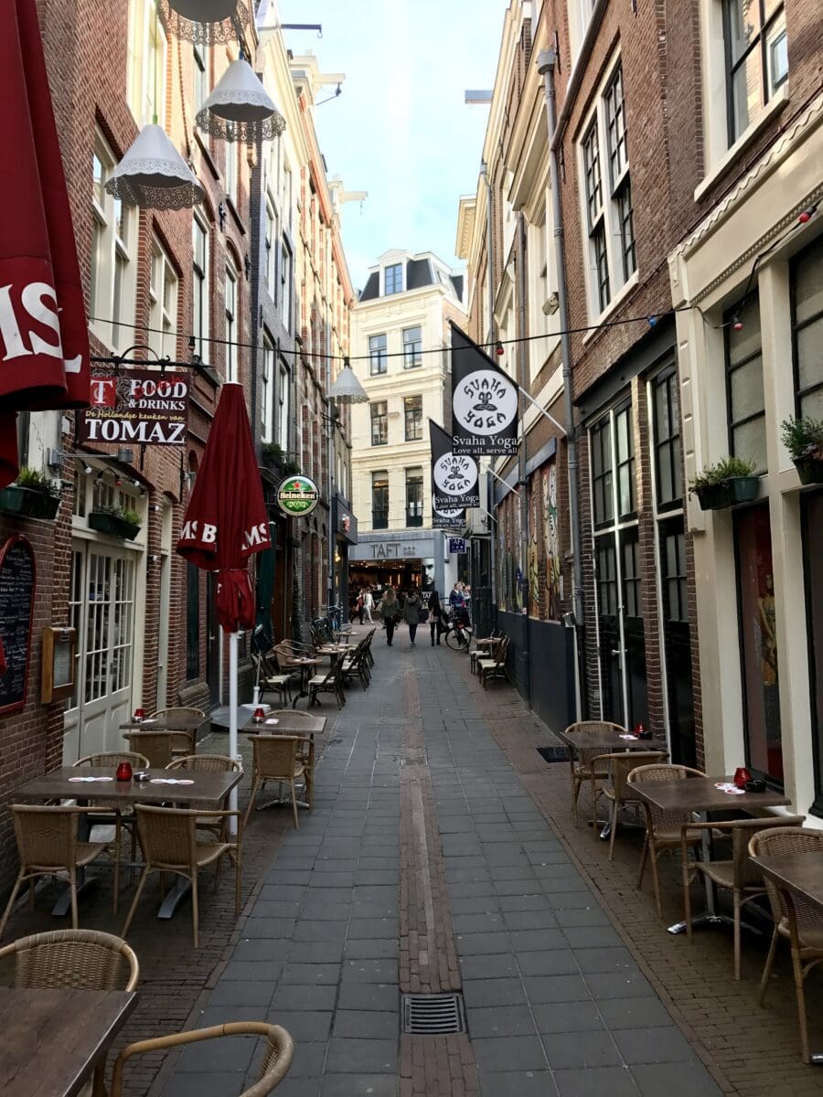A quick shower later and we’re out looking for a restaurant for our evening meal. We have two criteria, it should serves Dutch or Indonesian cuisine and we have two names on a yellow sticky supplied by a lovely lady in the hotel. We stop at the Haesje Claes Dutch restaurant and the evening is so warm we sit at a table outside. I go on a recce to trace the Indonesian whilst a beer is arranged at the Dutch. I come back bearing good news and after a little bit of banter with the waitress we pay the bill and make our way a hundred yards to Leantjil Tijger.