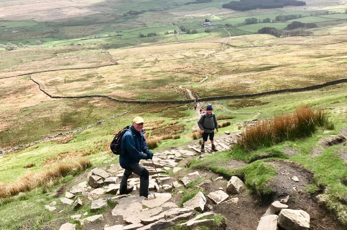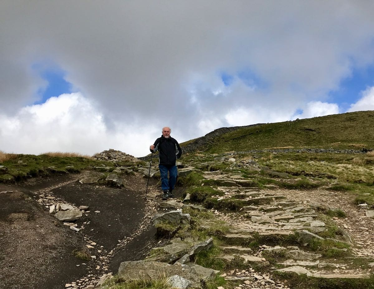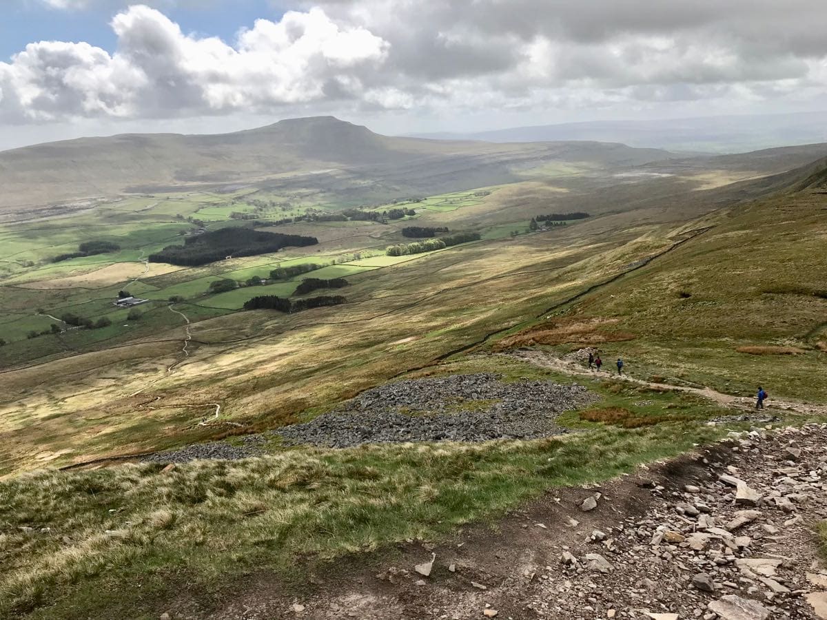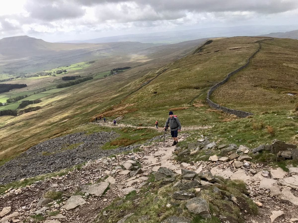 We continue along the path adjacent to the railway track and our heart and breathing rate step up a notch. It’s not steep but it is constant and we’re going to have to get used to this as we pass a sign that informs us that Whernside is four and three quarters of a mile (7.7km) and the gradient varies between ‘up’ and ‘very-up’.
