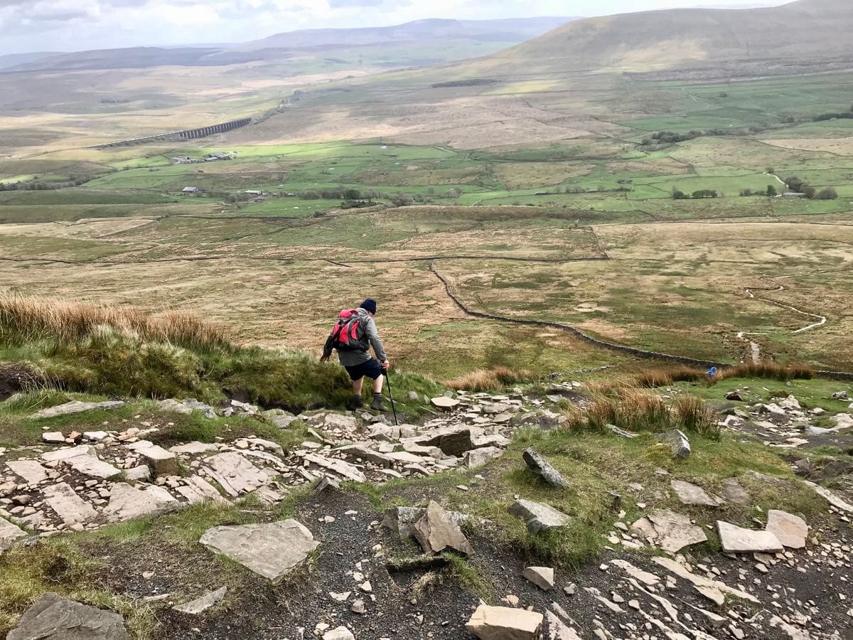 The descent is long and pulls at the front of the legs. We meet a group of firefighters from Grimsby and let them through. They’re on their second peak of the day and are doing the three peaks in under 12 hours, I ask if it’s sponsored and surprised with the negative reply, it’s just team building is the response!